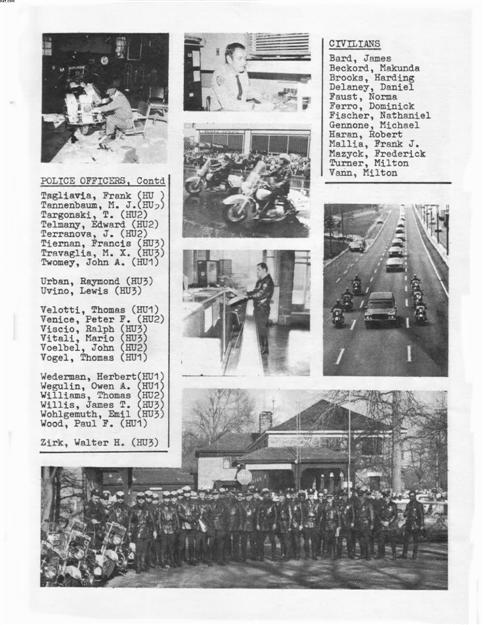 Ed Bauer in the second photo, center, the lower rider. Photo was taken during the Popes visit during which time it rained almost continually. This was one of the rare times officers were told to ride during rainy weather. (Anecdote by Ed Bauer regarding this escort motorcade. "We were first sent out from the station house, enroute to LaGuardia Airport, where the Pope’s motorcade would originate from. About half-way to the airport from the station house, we received a radio call for all cars to return to the station house where we were then, astonishingly, told we would ride, rain or no rain. We then mounted up, gassed up, formed up, and proceeded again to the airport. From that point on, for the next two day it rained almost continuously, with two exceptions. It seemed, almost incredulously, that every time we stopped a visit point with the Pope, the rain would diminish greatly or stop altogether, but as soon as he was back in his car, the rain would re-commence and continue entirely until we arrived at the next visit point. Although we were wearing the leather jackets, the rain penetrated all the way through to our skin. I recall having a puddle in each of my boots due to the water splashing up from the front wheel. The second exception was during the last day of his visit, and his stop at Shea Stadium for his farewell. We had been in Brooklyn where he visited an old church in downtown Brooklyn, and we then took the BQE to the GCP, to the Northern Blvd. ramp to Shea Stadium where we would enter through the center field gates. As we turned off the ramp and began to enter the stadium, the rain stopped, the clouds parted, and the sun came out for the first time in two days. It sent chills up my spine…… ..almost made me want to go right to church!!!!!! Ha, ha, ha. What an experience!!!" |